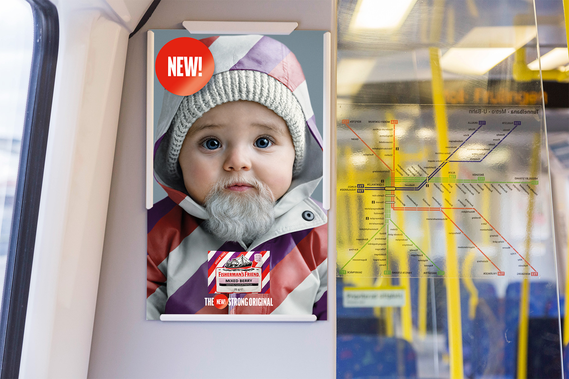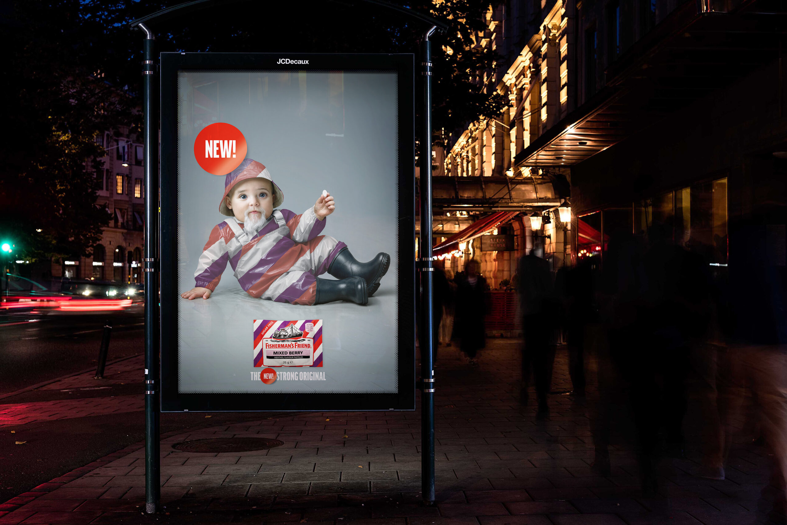 2024 sjösatte Fishermans Friend det långsiktiga kommunikationskonceptet ”The Strong Original”. Den ikoniska fiskaren återtogs som en varumärkessymbol och kläddes i Fisherman’s Friends klassiska ränder. Sedan dess har fiskaren symboliserat varumärket och kommenterat samtiden i kampanjer och sociala medier. När det var dags att lansera en ny smak gick rollen till varumärkets yngsta fiskare någonsin: en skäggig bebis i full fiskarmundering. Ett oväntat men självklart sätt att symbolisera födelsen av något nytt. Kampanjen började också som en födelseannons i tryckta upplagan av Göteborgs-Posten, där Mixed Berry presenterades på familjesidorna under ”Födda”. Därefter spreds kampanjen brett – i utomhus, digitalt och i butik.