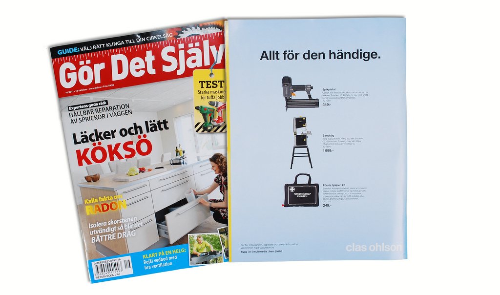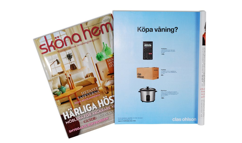 Clas Ohlsons sortiment är så stort att det går att berätta historier enbart med hjälp av deras produkter. Varje berättelse är anpassad för det magasin som den publiceras i.