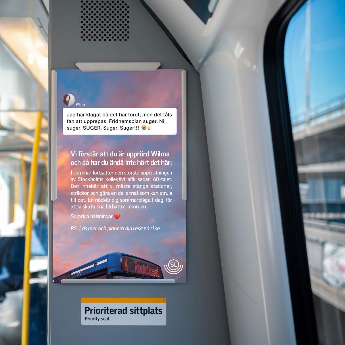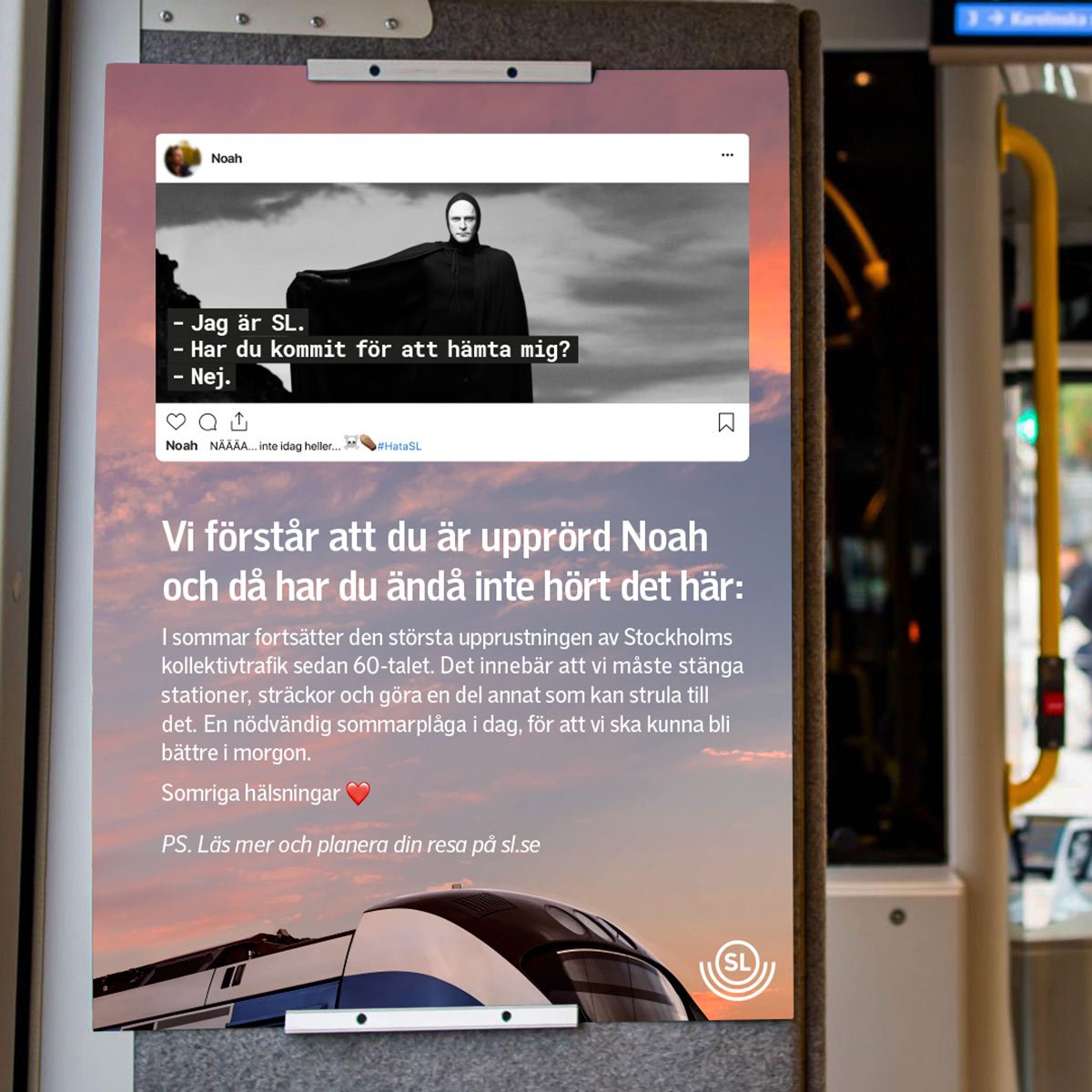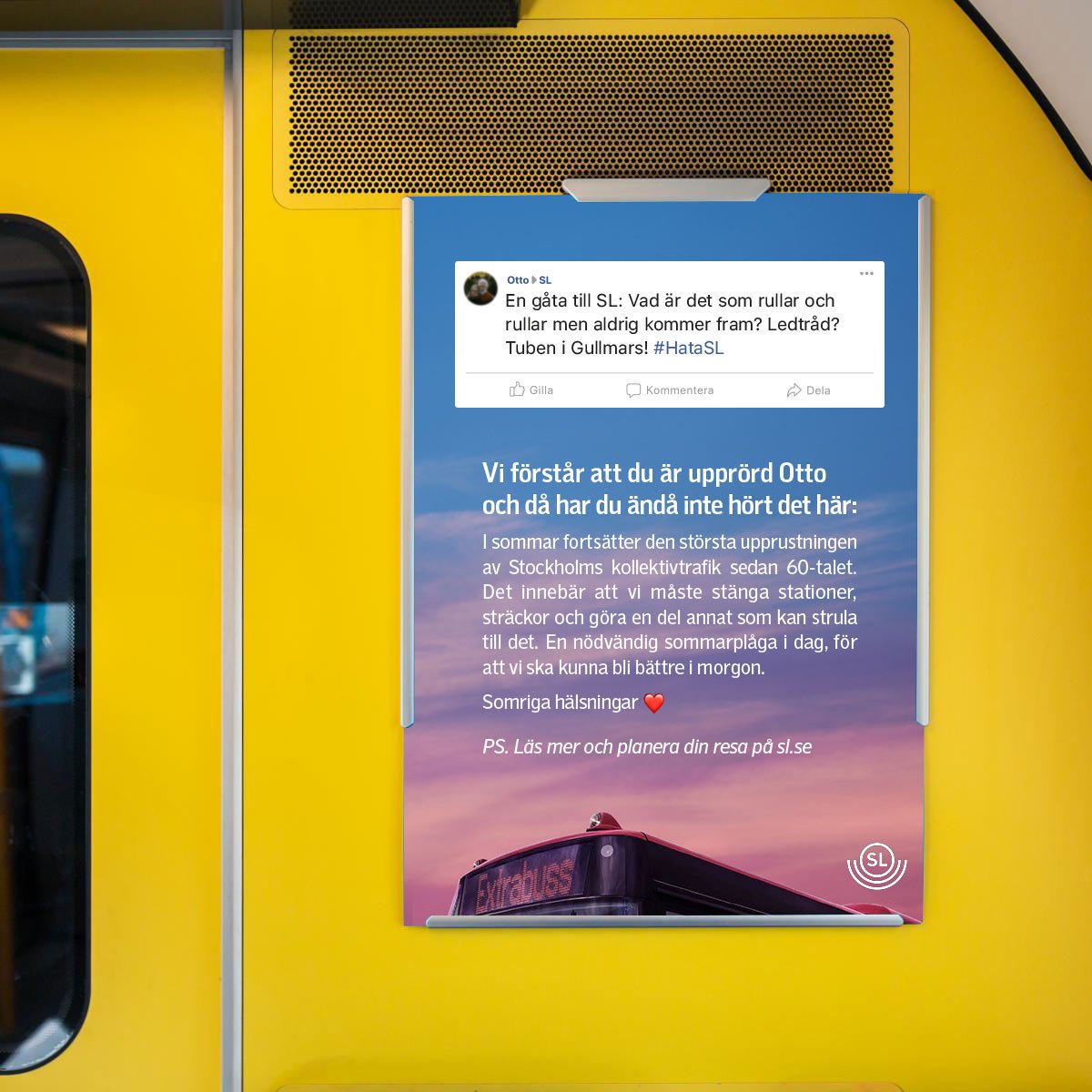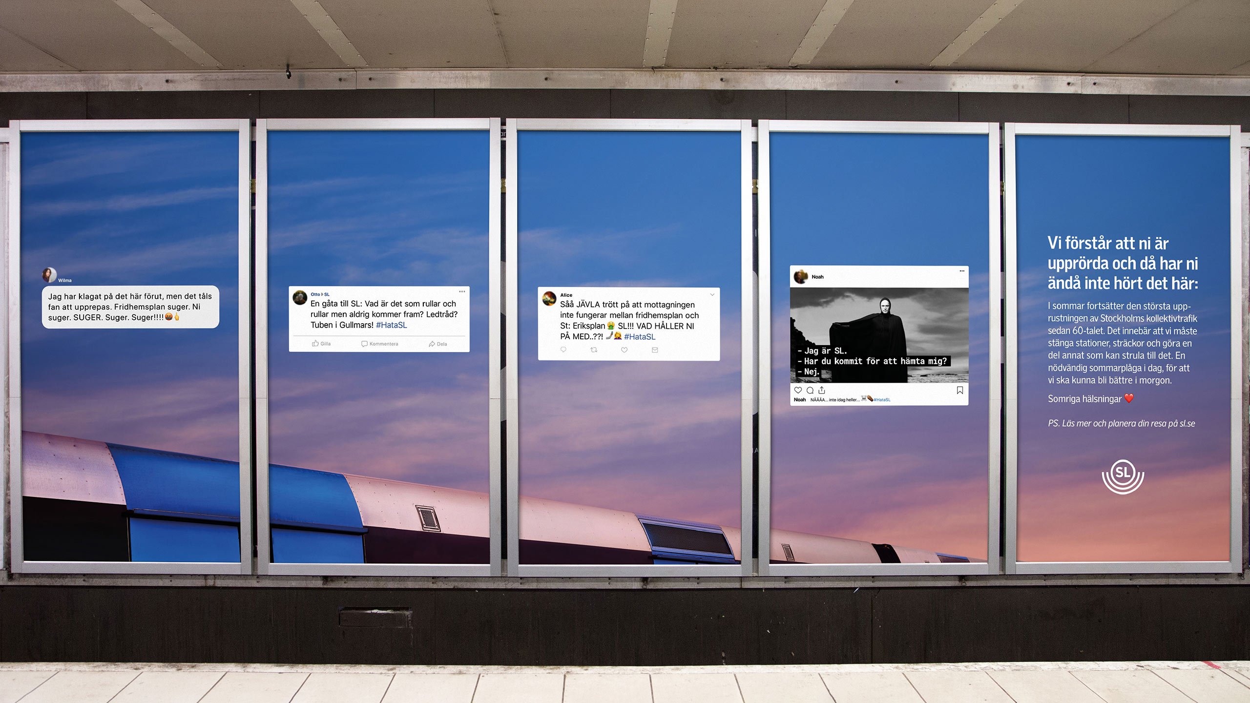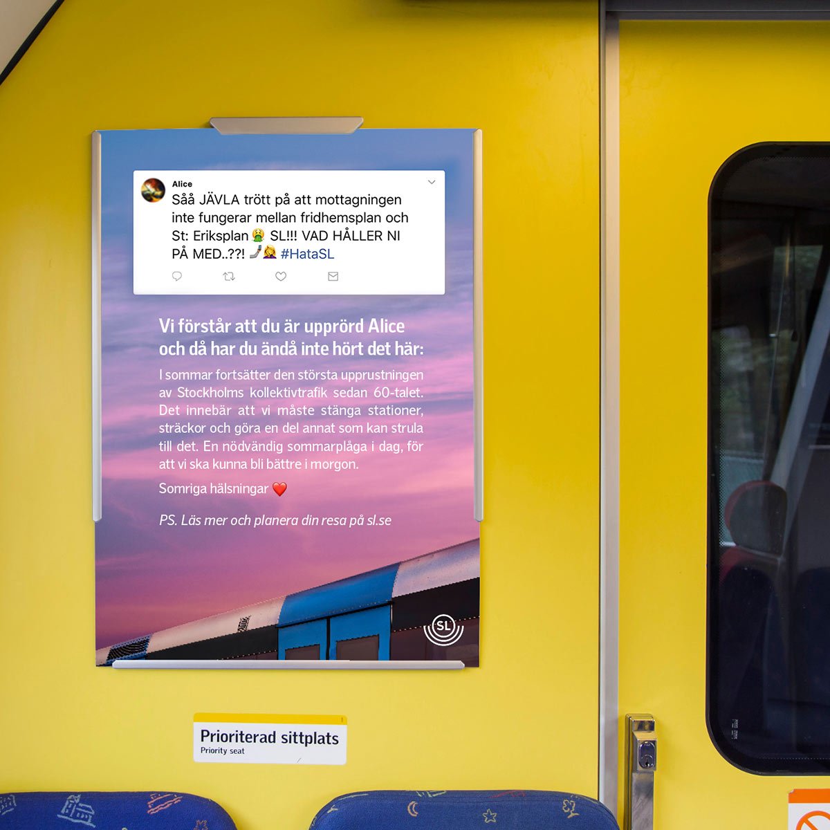 När SL skulle sätta i gång med den mest omfattande renoveringen av Stockholms kollektivtrafik sedan 60-talet lanserade vi Dear Haters. En kampanj som svarade på befintliga klagomål från SL:s sociala medier och informerade om att det skulle bli ännu värre.