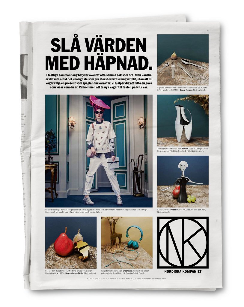 Presentguider utgår alltid ifrån att det viktiga är till vem presenten är. NK vände på tanken och fokuserade på vem presenten kom ifrån. På stortavlor och i annonser visade vi några vanliga ”presenttyper” med invanda rutiner som NK ville utmana. I varuhuset möttes man av förslag på presenter utifrån presenttyp samt ytterligare tips och beskrivningar. Kampanjen var en del av vårens övergripande tema ”Nya vägar” där NK uppmanade sina kunder att ta nya vägar både inom och utanför varuhuset för att få mer inspiration.