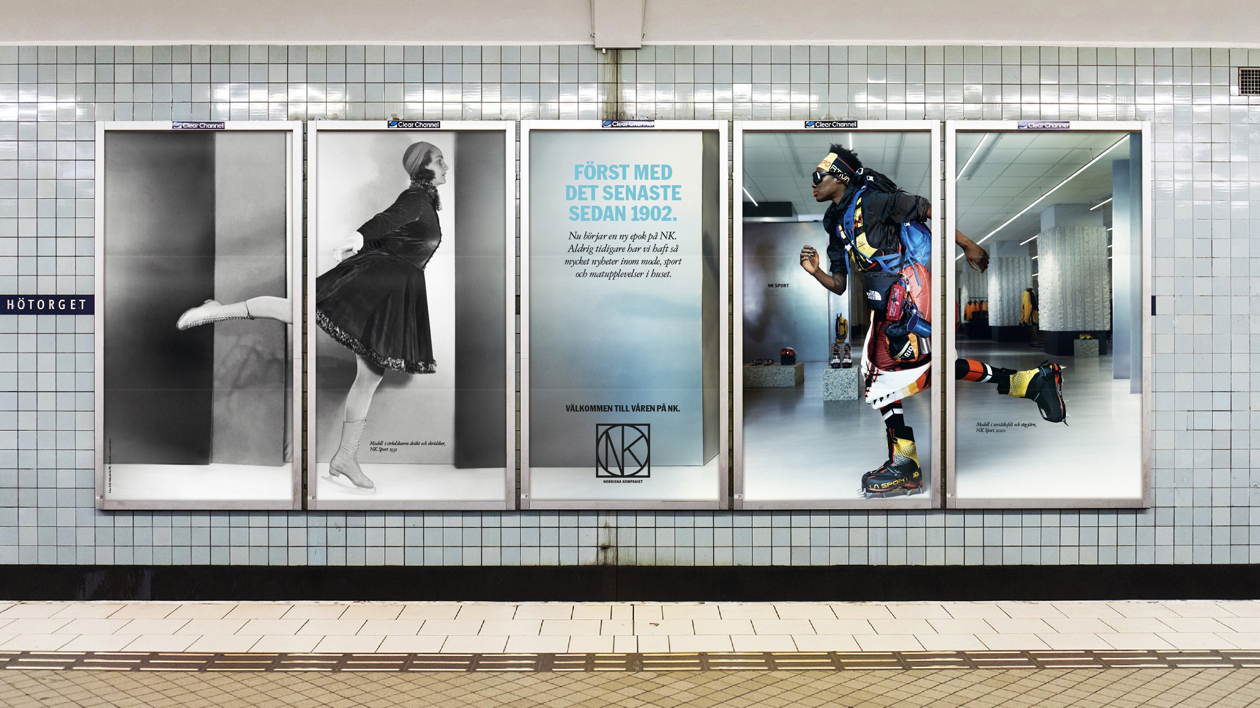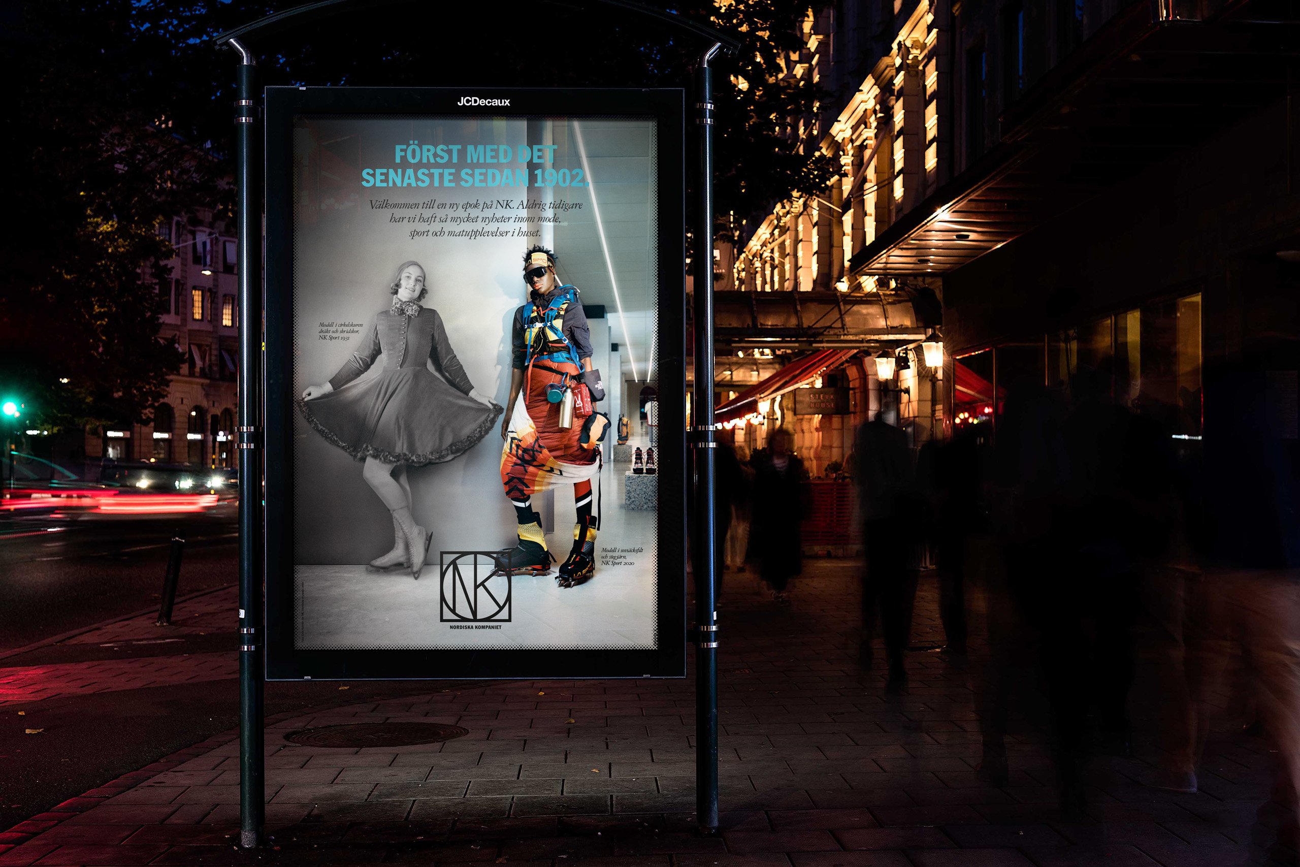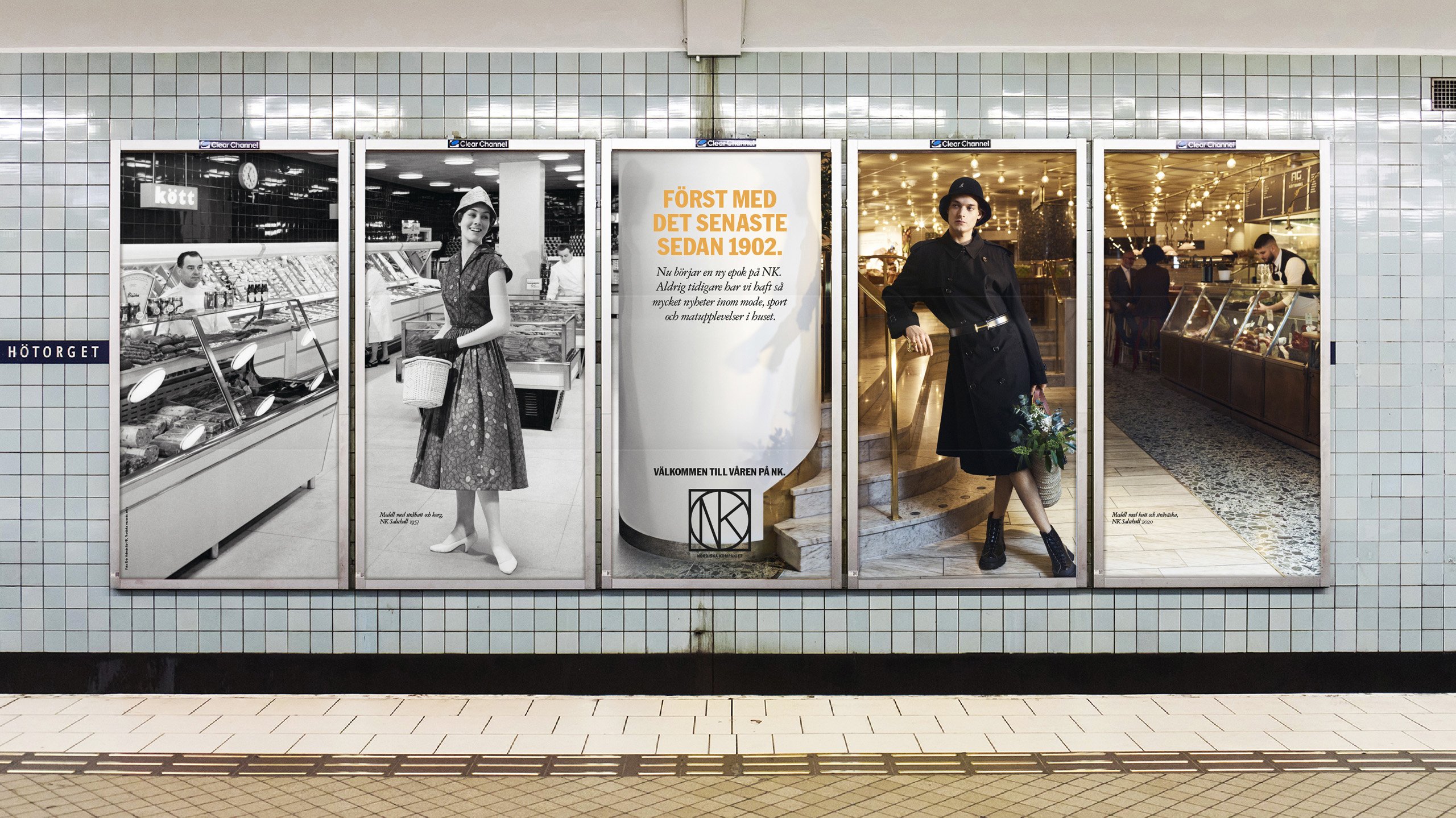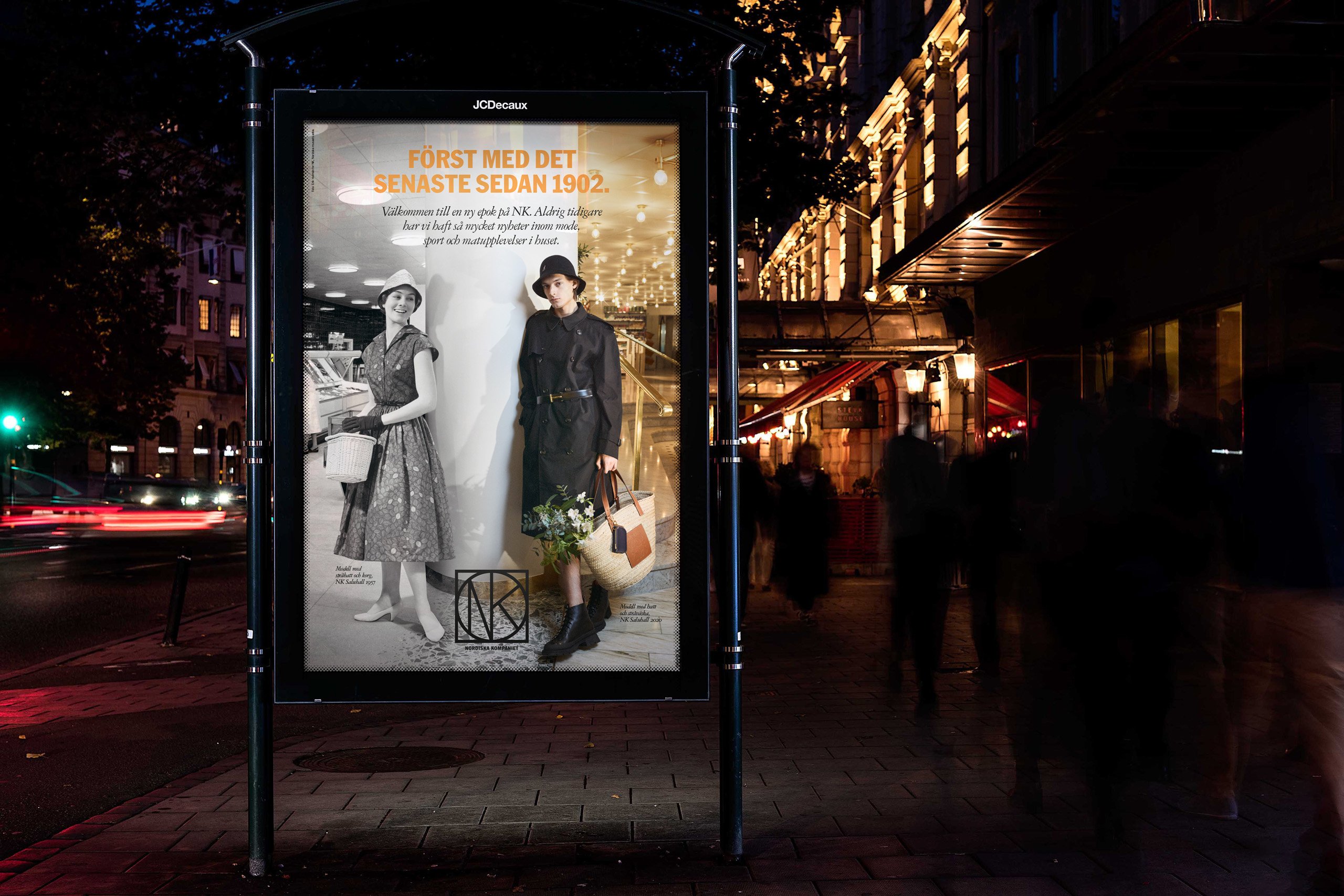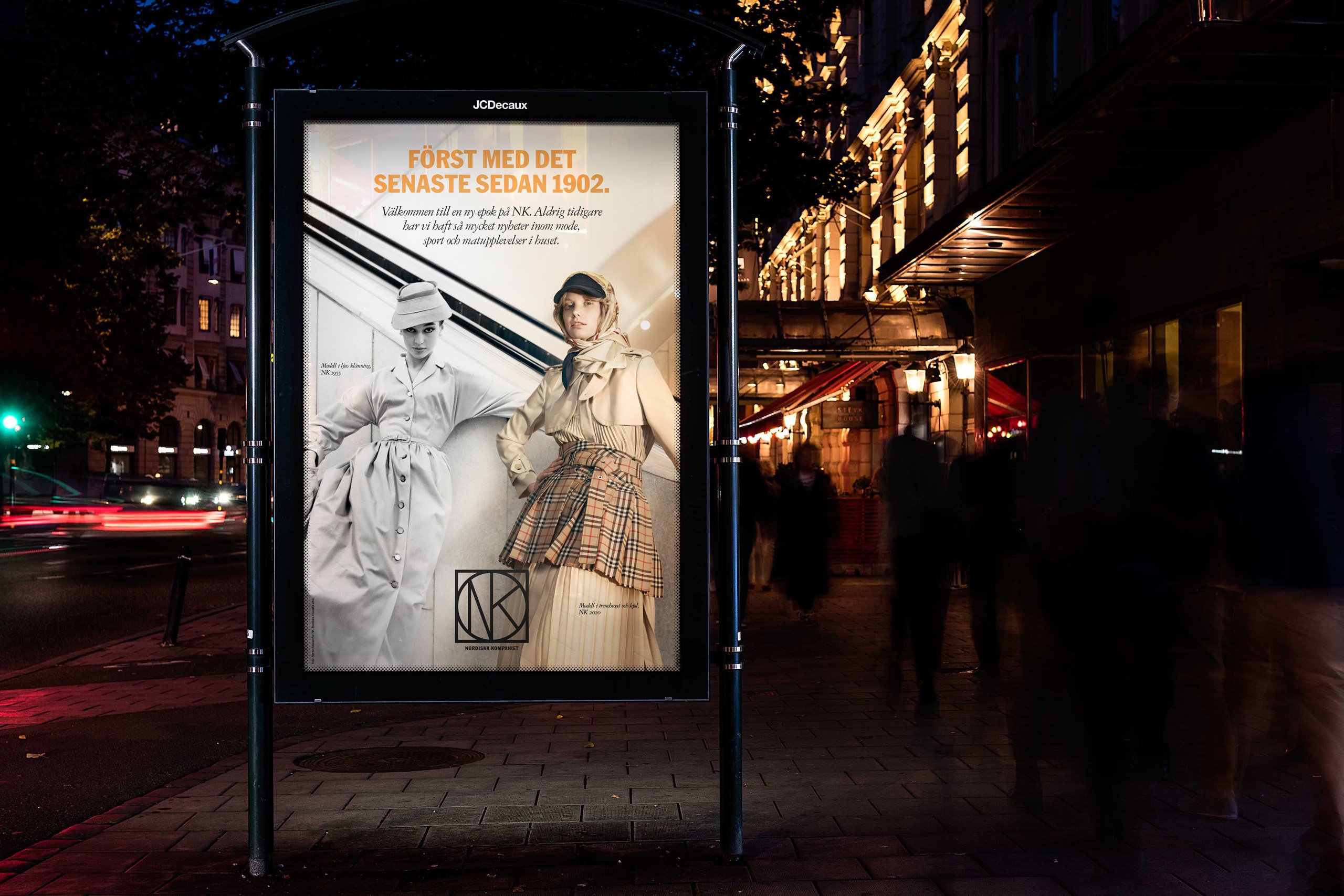 NK wanted people to discover all the latest fashion and their new departments in the building. The department store has often been the first in Sweden with the latest trends and fashion, in the past as well as today. To prove this, we created a campaign were historic pictures from NK’s archives were merged together with brand new pictures depicting the latest spring fashion. Models from the past and present were united and posed together on the same locations in the department store.