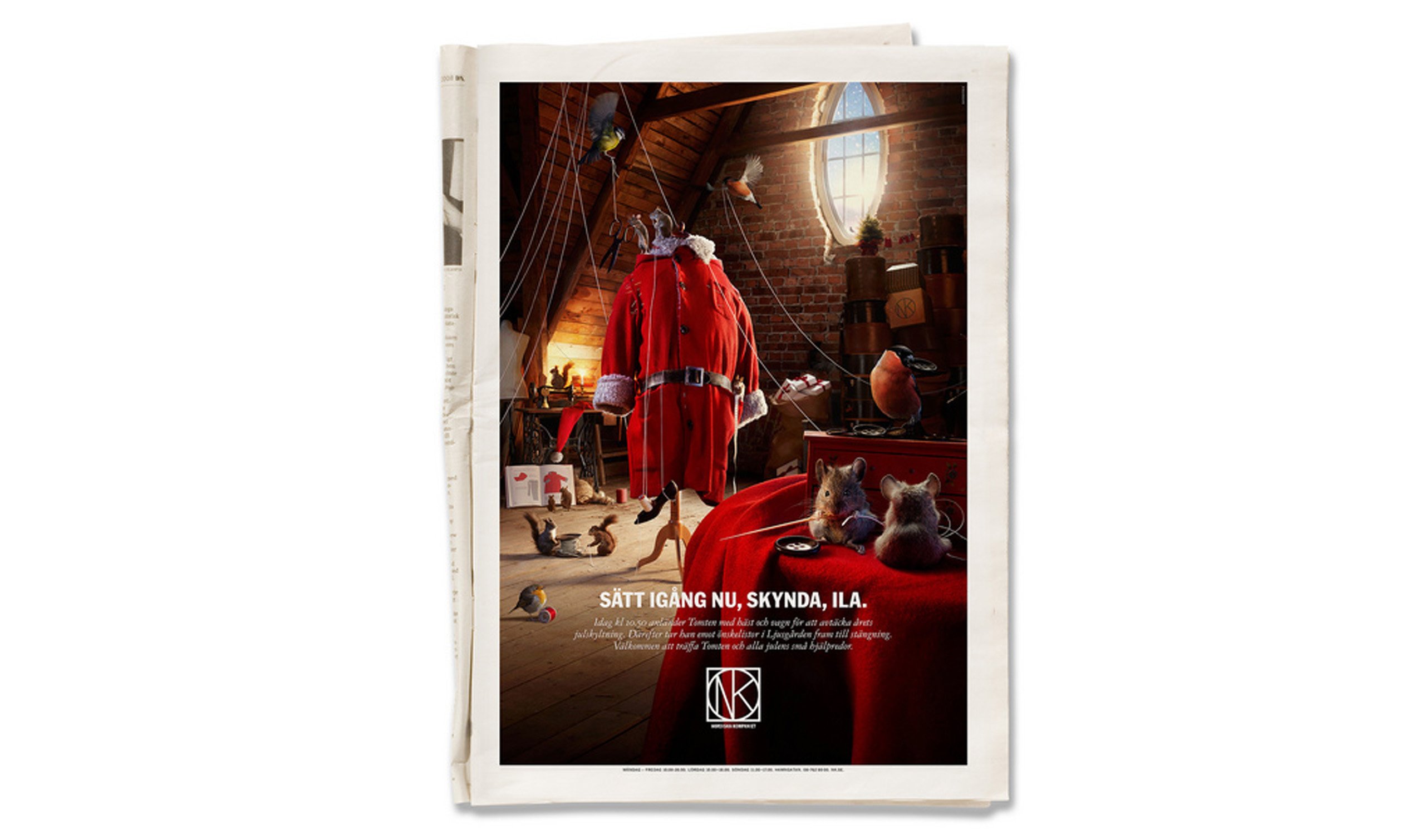 För att berätta om NK:s skyltsöndag tog vi hjälp av några flitiga små vänner. Kanske har du sett dem förr? Annonsen är plåtad av Fredrik Ödman och djuren regisserades av Martin Bergström.