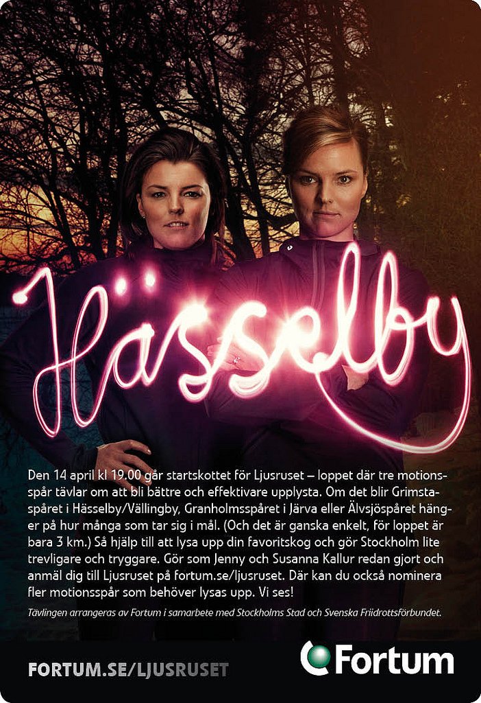 Under långa och mörka vintrar ligger löparslingorna öde och vi själva på soffan och sväller. Om det hade känts tryggare och varit lite ljusare ute i skogen, skulle vi röra på oss mer då? Det är idén bakom Ljusruset, ett lopp där tre Stockholmsskogar tävlar om ett elljusspår. 14 april gick loppet av stapeln och hela 7592 människor var med och sprang. Vann gjorde Älvsjö med 3553 deltagare. Grattis!