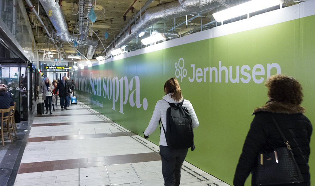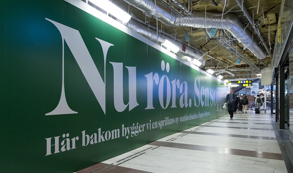 At the moment, the construction of a new food court is making life difficult for the visitors of Stockholm Central Station. We’ve assisted by spreading information about the construction on the boarding.