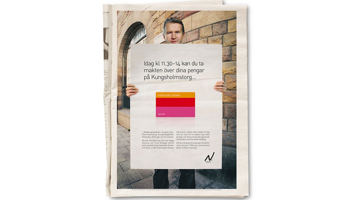 På TV, webben och i annonser med Mr Square i huvudrollen – och på nordnet.se i mer mänsklig form för dig som vill få 200 kronor i startbidrag och sälla dig till Nordnets över 95% nöjda användare.