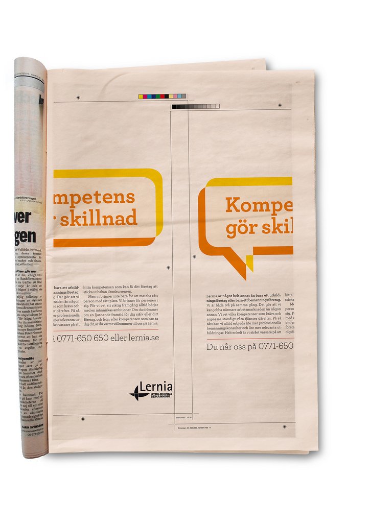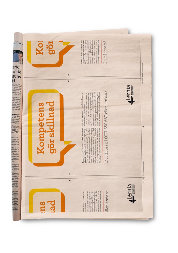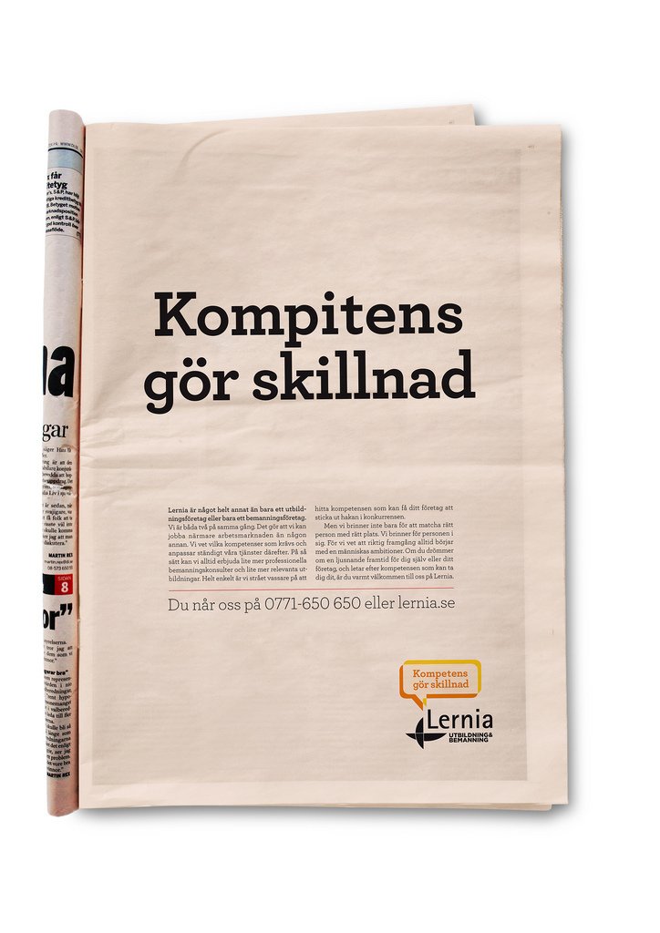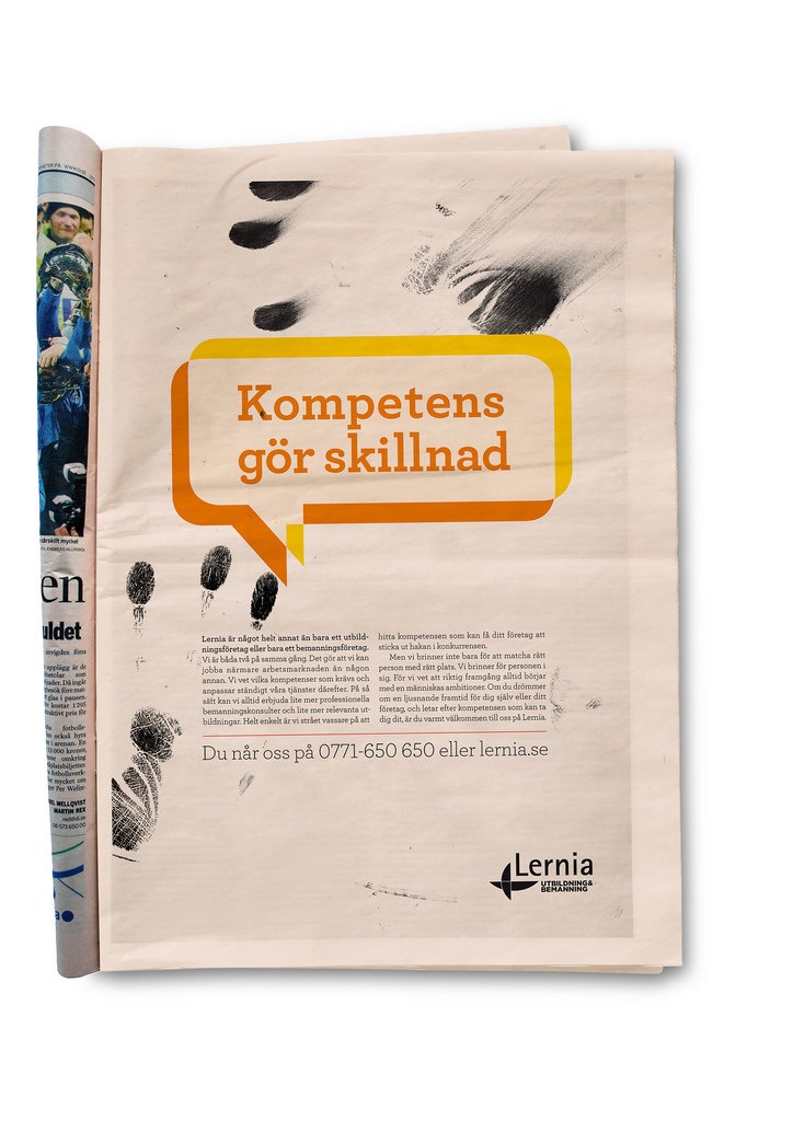 I vår första kampanj för utbildnings- och bemanningsföretaget Lernia har några klåpare varit i farten. Bland annat lyckas inkompetenta tekniker strula till reklamblocket mitt i reklamen för OLW, Folkpool, Lexus och Silja Lines italienska veckor. På DI:s tryckeri har man lyckats sätta annonsen på sned och tydligen kan vi inte stava rätt själva heller. Allt för att pränta in Lernias varumärkeslöfte “kompetens gör skillnad”.