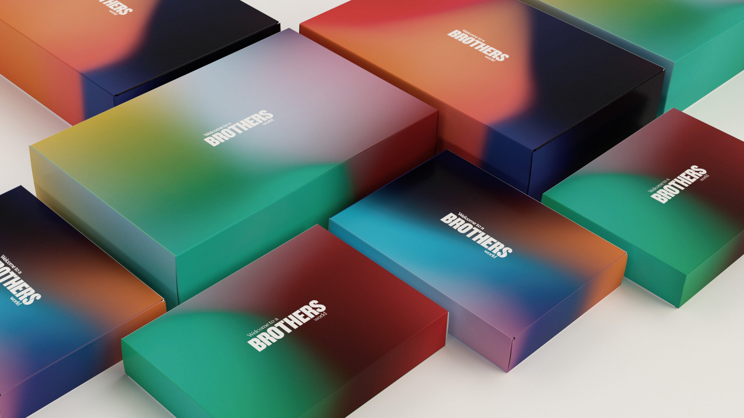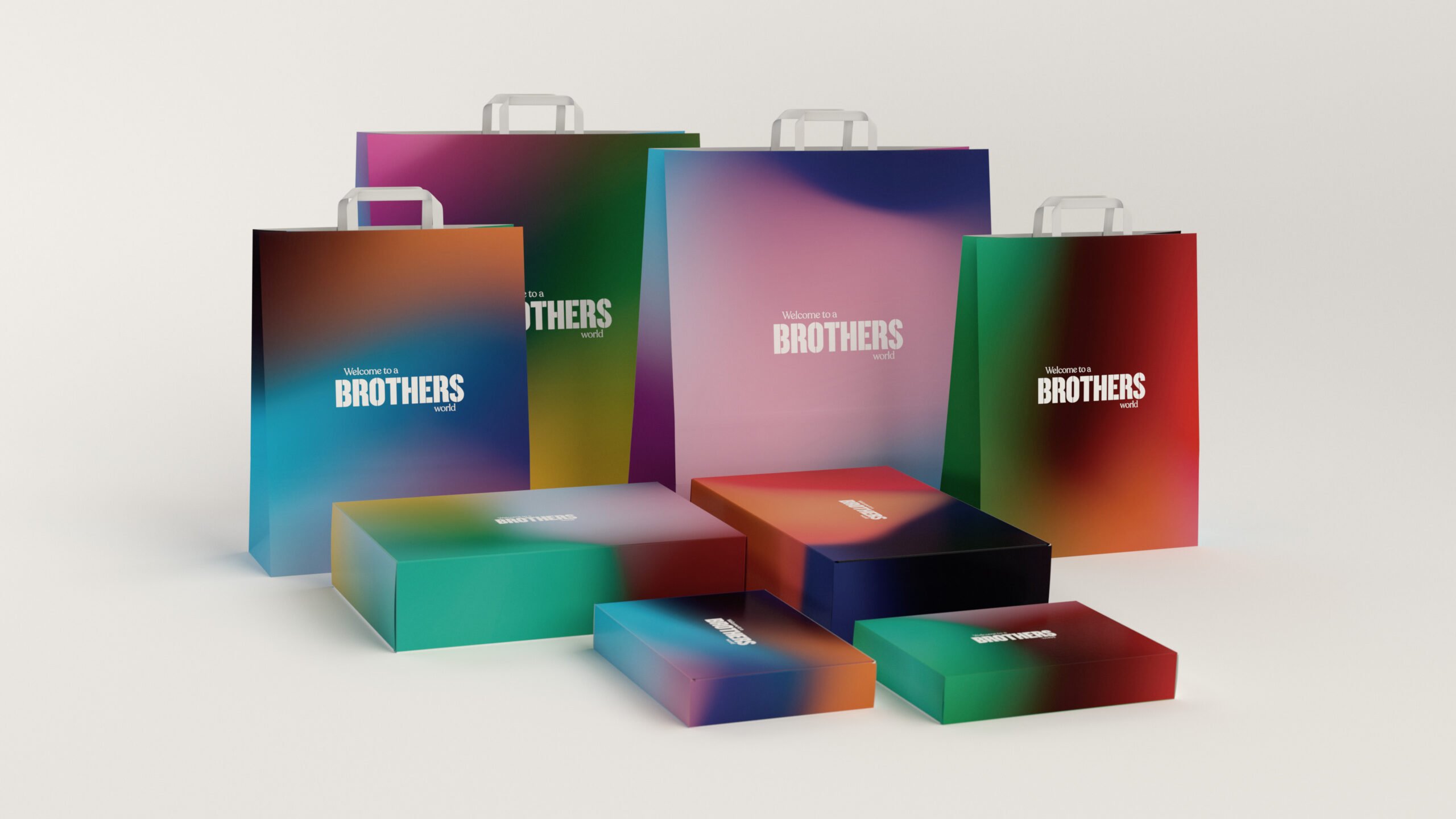 A Brothers world is our new concept for Brothers. It’s an open world where men dare to express their personal style and emotions. The concept includes a visual identity that reflects a world where it’s ok to be hard and soft, strong and vulnerable, rational and emotional. We call the visual concept Sense & Sensibility. It has an organic palette of gradients in various colors, which allows Brothers to be soft and hard, bright and warm, dark and cold, depending on the seasons, collections and campaigns. The Sense & Sensibility is also represented by the combination of two typefaces: The bold Brothers Stencil, based on the Brothers logo characters, and the romantic Recoleta.