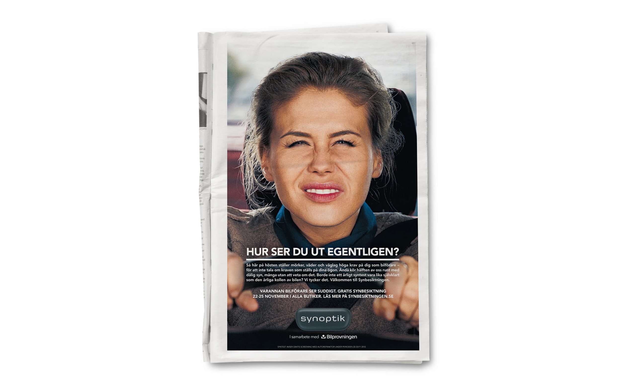 Varannan bilist som möter dig på vägen ser dåligt. Det visar statistik från 3 år av Synbesiktning. Den 22 november i år var det dags för den fjärde upplagan. Förutom gratis syntester i Synoptiks alla butiker, kunde bilförare kolla synen, samtidigt som besiktningsmannen kollade bilen.
