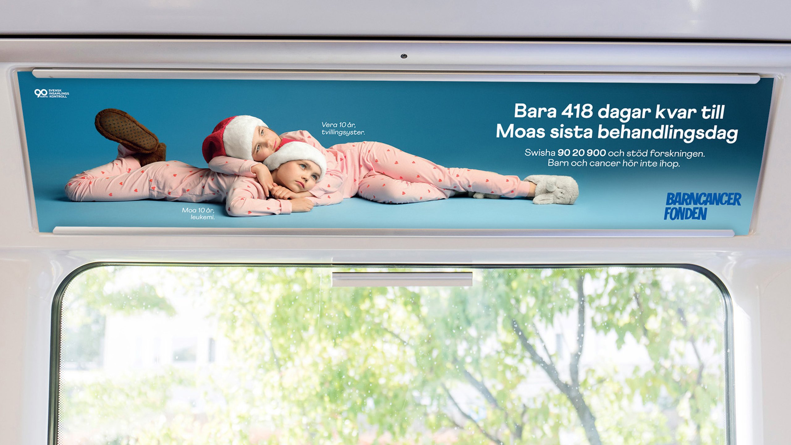 Vissa barn väntar på mer än Tomten när december kommer. I julkampanjen för Barncancerfonden uppmärksammar vi Dinas och Moas långa väntan på sista behandlingsdagen. En traditionell mediemix är utökad med en särskilt anpassad ”Nu blir det reklam”-vinjett på Filmstaden där Dina står för nedräkningen.