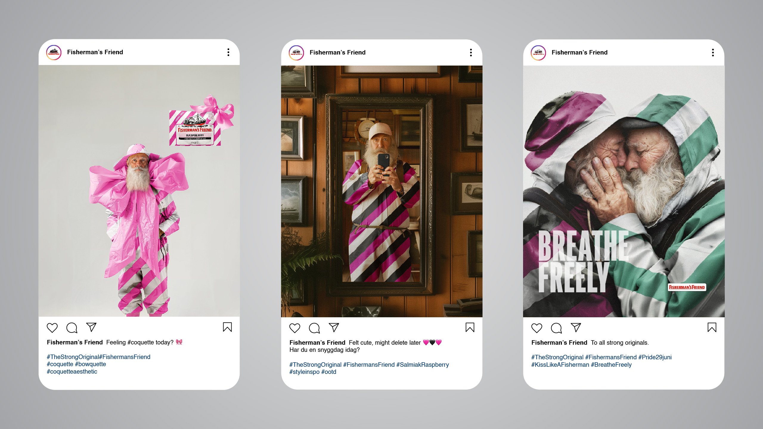 Fisherman´s Friend utvecklades 1865 av den engelske apotekaren James Lofthouse för att lindra fiskares luftrörsproblem. Nu ville man nå nya generationer användare i Norden. Lösningen blev att utifrån konceptet ”The strong original” återta fiskaren som symbol och klä honom i Fisherman´s Friends klassiska ränder. Sedan låta honom dyka upp mitt i vår samtid och bjuda på nya oväntade sidor hos sig själv. Men alltid tryggt vilande på sitt arv och inre styrka. Något som visat sig oerhört arbetsbart i allt från engagemang i sociala kanaler till att uppträda live som DJ.