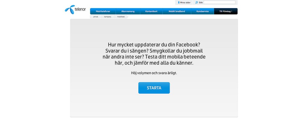 Svarar du i din mobil på toaletten? Smygkollar du jobbmail när andra inte ser? Hur ofta uppdaterar du din status på Facebook? Testa ditt mobila beteende på telenor.se