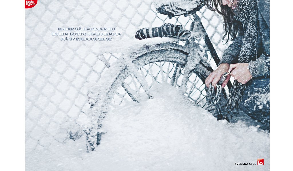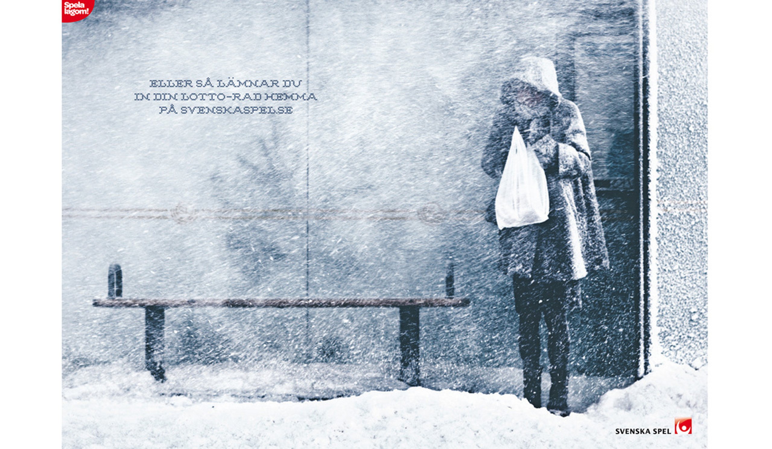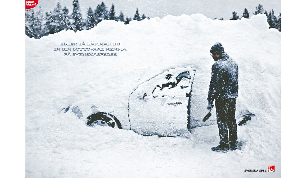 Årets vinter förutspås bli den kallaste på tusen år. Nu passar svenskaspel.se på att påminna sina kunder om att det går lika bra att lämna in lottoraden på nätet, genom en annonskampanj med bilder från den den svenska “vinteridyllen”.