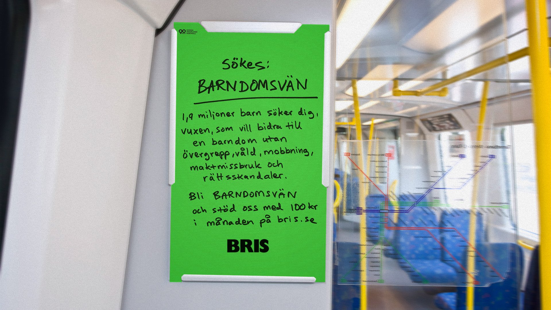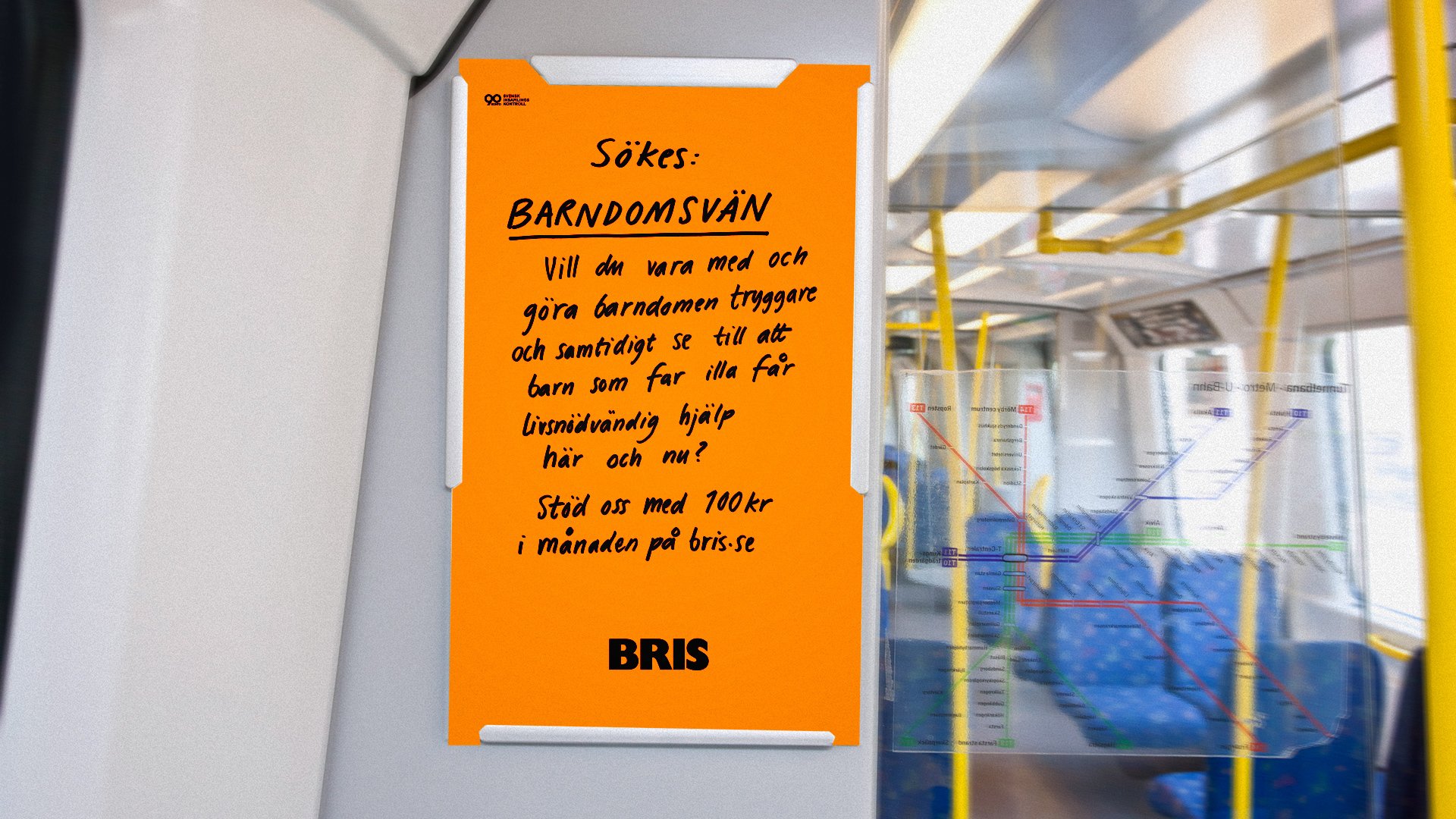 Bris Sweden – Children’s Rights in Society – needs more people to support their operations and were looking for a name for the people who do that on a monthly basis. The name they chose was Childhood Friend, and in the first campaign, we sought them through advertisements, posters, social media and notes on local noticeboards. Bris’ Secretary General, Magnus Jägerskog, also reached out to them through films and advertisements in DI.